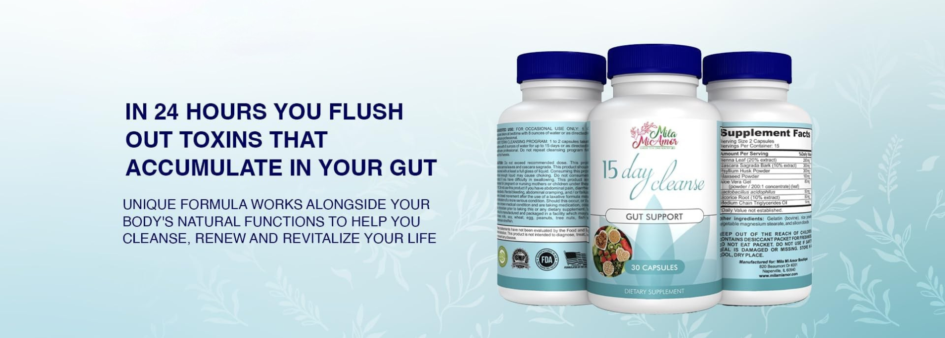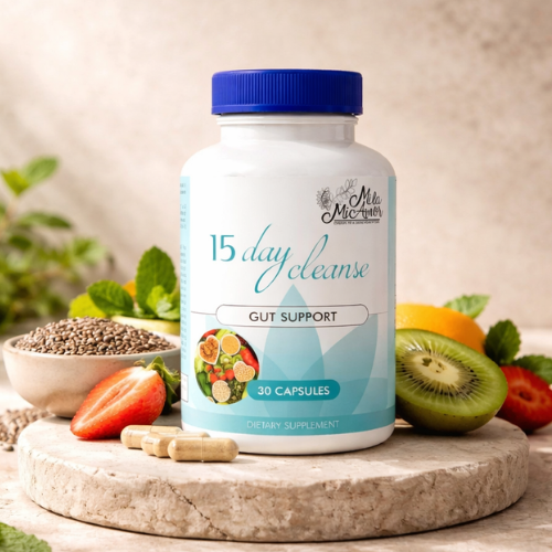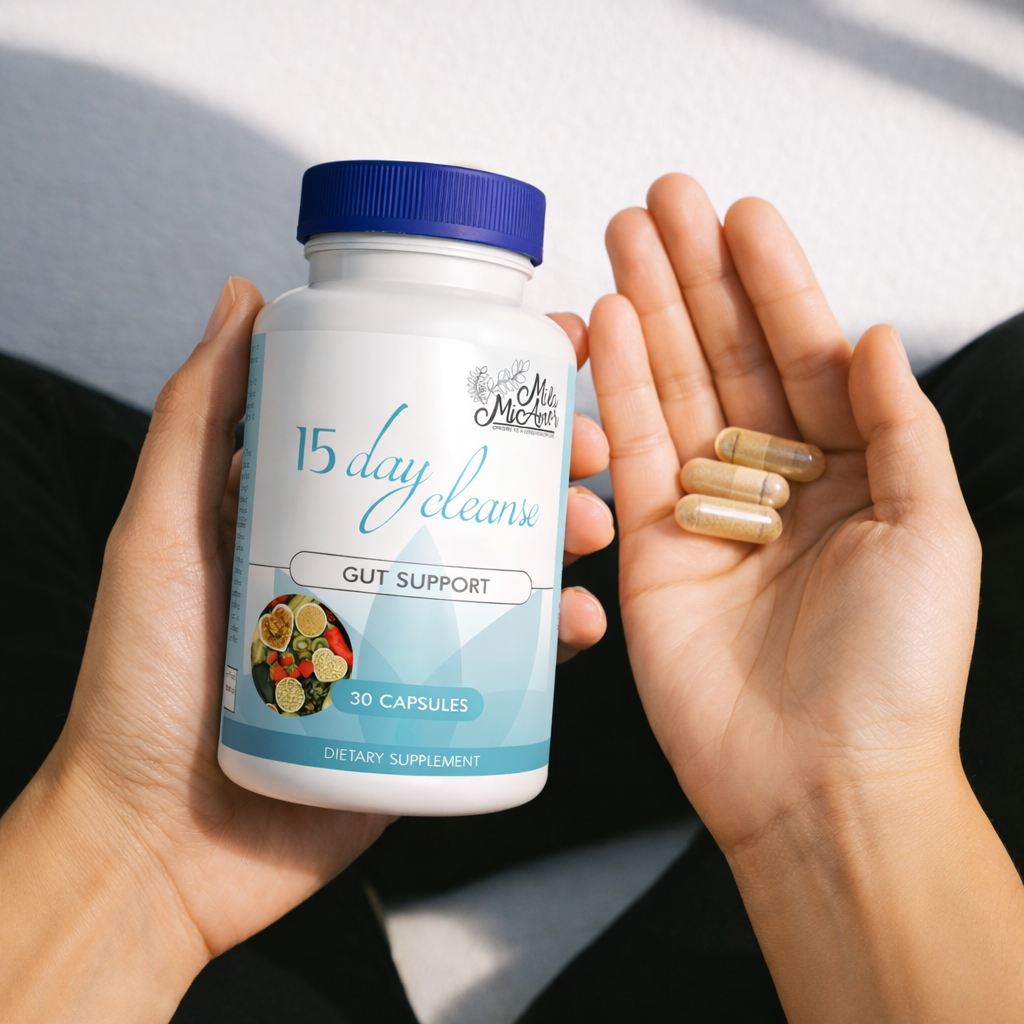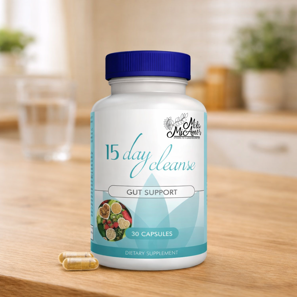 Our 15 Day Cleanse by Mila Mi Amor is crafted with natural ingredients to gently yet effectively support your gut. It’s not just a cleanse; it's your path to feeling incredibly light, energized, and totally renewed. Get ready to experience true gut liberation!